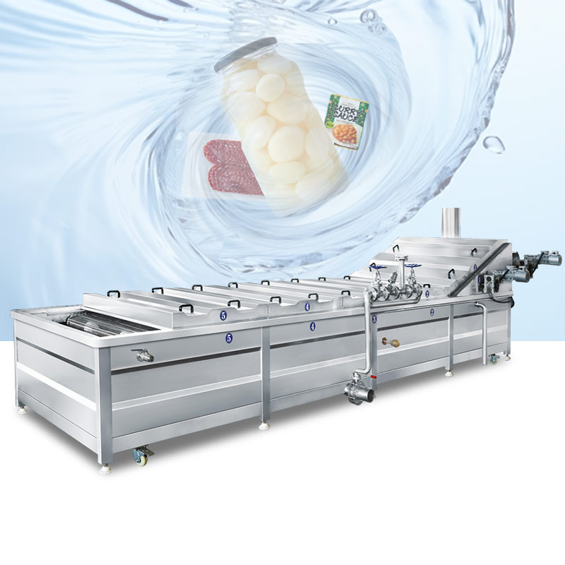 أ water bath pasteurizer is an advanced automation system. It is an ideal choice for heat-sensitive food processing to realize continuous operation through precise temperature control. It is made of durable SUS304 stainless steel, equipped with a PLC and a touch screen control device, which can easily adjust sterilization parameters while ensuring stable operation. فضلاً عن ذلك, the energy-saving heat recovery and automatic filtration system of the bath sterilizer reduces energy consumption, ensures uniform heating, and prolongs the shelf life.