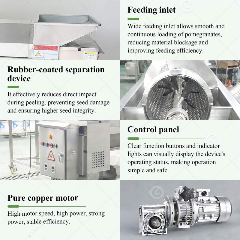 Widely used in the raw material preparation stage for baking, Desserts, and dairy enterprises, ensuring that the pomegranate seeds used in production are hygienic and have a minimal breakage rate.