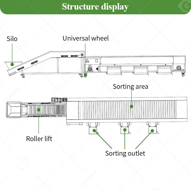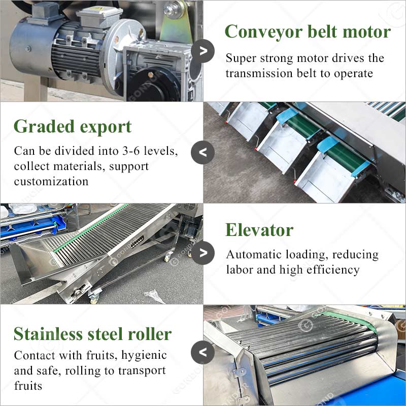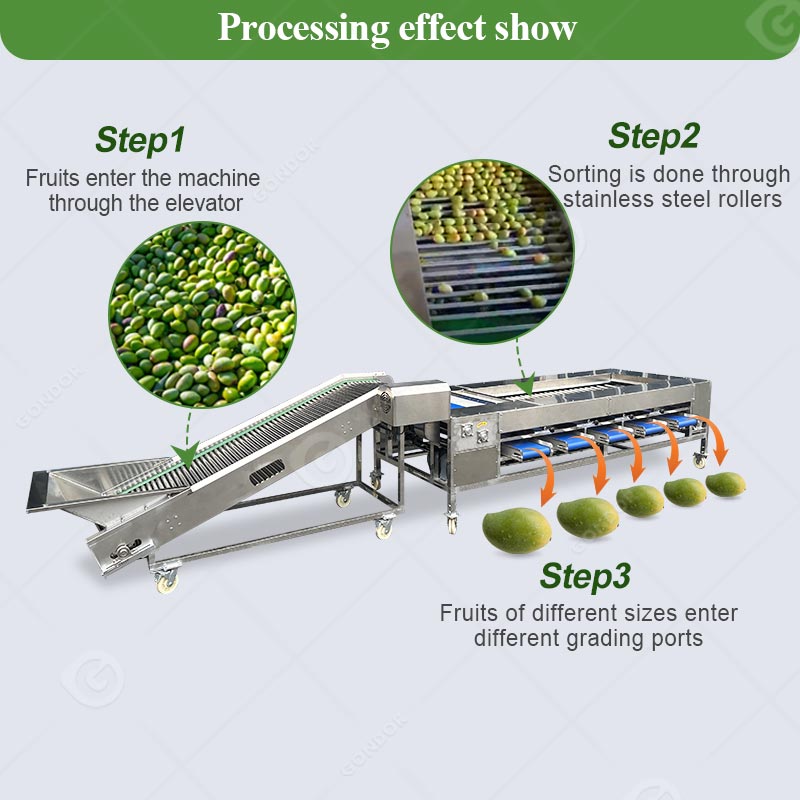 With the rapid development of modern agriculture and fruit and vegetable processing industry, roller sorting machine has become the key equipment to realize efficient and accurate grading with its advanced mechanical structure and intelligent control system. The equipment is made of all stainless steel, which is mainly composed of automatic fruit feeding conveyor and roller sorting unit. By adjusting the roller spacing, 3-6 levels of rapid sorting can be realized.