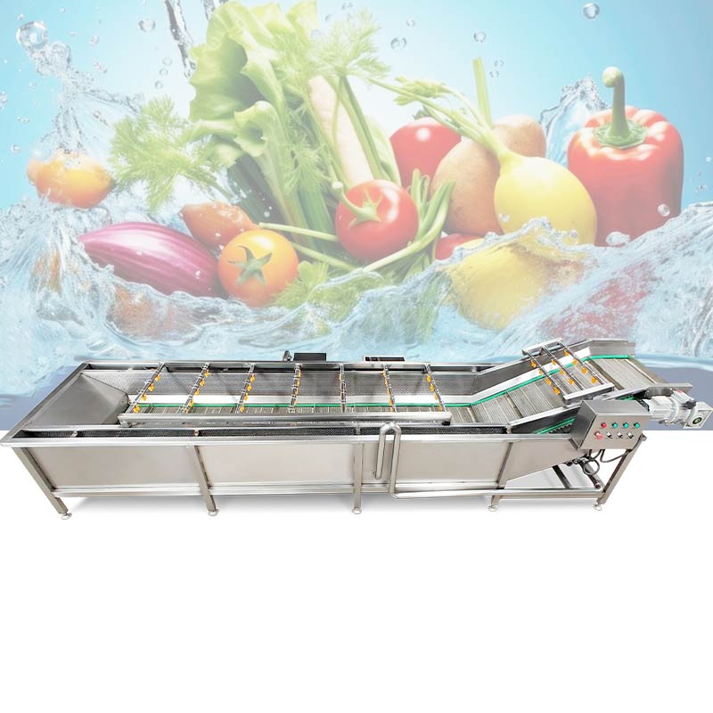Gondor bubble vegetable washing machine is a highly efficient cleaning equipment. It uses the impact force of bubbles and the flushing force of water flow to clean all kinds of fruits and vegetables in an all-round way. During the cleaning process, the bursting of bubbles can separate the dirt from the surface of fruits and vegetables, and the water flow takes the dirt away. Besides, the equipment has the advantages of good cleaning effect, high efficiency, and no damage to fruits and vegetables. It is widely used in vegetable processing plants, fruit planting bases, supermarket fresh food areas and other places. It can effectively remove pesticide residues and impurities, allowing customers to eat more assured.