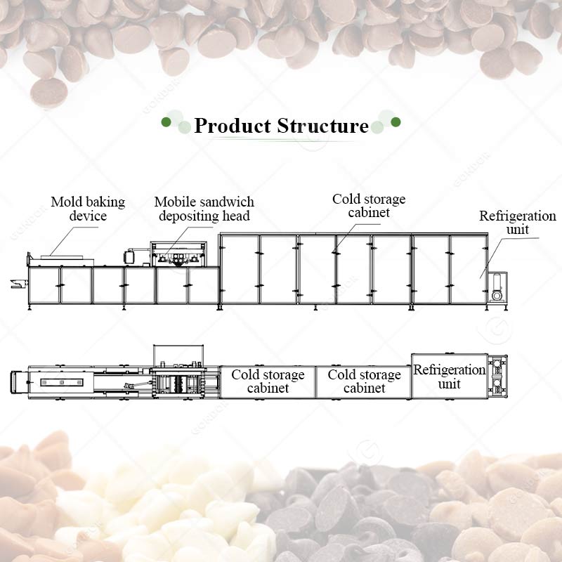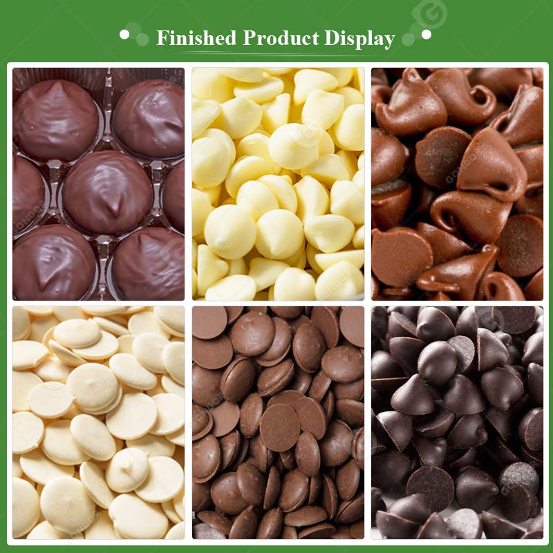 This chocolate dripping production line is ideal for mass production, offering high efficiency, consistent quality, and precise control over chocolate flow. It is commonly used for producing chocolate chips, drips, and small-sized chocolate pieces for use in baking, confectionery, and other food products.